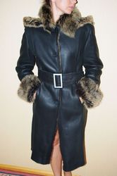 Продам б/у черную дубленку , евродлина, капюшон отстегивается, состояние хорошее, пр-ва Турция, размер 46-48, Плечи-46см., Грудь-106, Бедра-108, Длина-108. Цена 1500гр.торг уместен. Продам б/у рыжую дубленку, воротник из енота, состояние отличное, пр-ва Турция, размер 44-46.