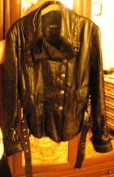 искусственная дубленка с лаковыми вставками.состояние хорошее, цвет черный, серый мех.очень теплая..