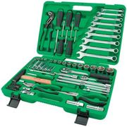 Набор инструмента комбинированный с трещотками 1/2" и 1/4", 80шт. TOPTUL GCAI8002 Toolgrand – автосервисное оборудование и инструмент по лучшим ценам. • Торцевые головки 1/2" 11 предмет(ов) (14, 15, 17, 18, 19, 21, 22, 24, 27, 30, 32мм) • Глубокие торцевые головки 1/2" 3 предмет(ов) (14, 17, 19мм) • Трещотка (1/2", 1/4") • Т-образный вороток 1/2", 1/4" • Кардан 1/2", 1/4" • Удлинители 1/2" 2 предмет(ов) (125 мм, 250 мм) • Удлинители 1/4" 1 предмет(ов) (100 мм) • Головки свечные 1/2" 2 предмет(ов) (16 мм, 21 мм) • Пассатижи 2 предмет(ов) • Молоток деревянная ручка • Отвертки 5 предмет(ов)(PH, SL) (PH1x80, PH2x100, PH3x150 / SL5.