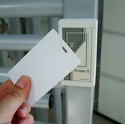Карточные турникеты. Интернет-магазин от компании Спецавтоматика предлагает турникеты, открывающиеся только при помощи бесконтактных карт и пульта управления. Турникет оснащен блокоп питания, пультом управления и считывателями бесконтактных карт стандарта EmMarine, с обеих сторон.