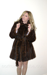 норковая шуба для женщин, клеш от талии - размер 46 48 50. Воротник «хомут», можно носить как отложной. Рукава прямые, с широкими манжетами из меха, уложенного поперечными пластинами.
