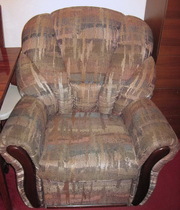 Продам б/у кожанный уголок + 1 кресло, требует окраски.торг..