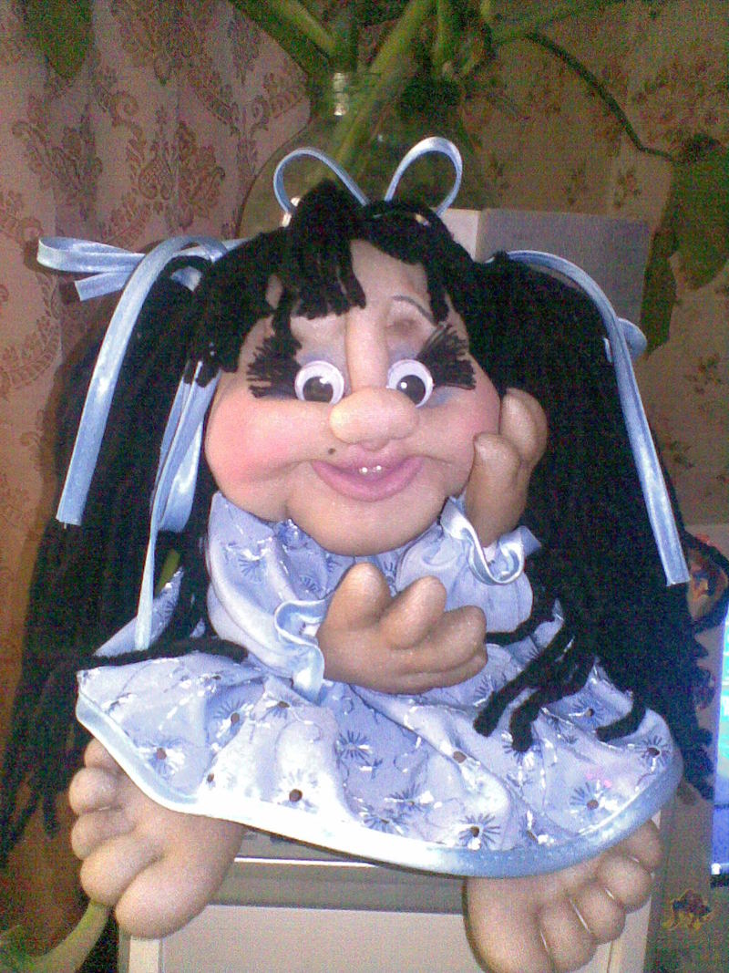 Госпожа удача... Как капризна бывает она! Когда благоволит она к нам - мило улыбается в лицо, не успеешь порадоваться - поворачивается задом... Непостоянство этой своенравной дамы можно легко преодолеть: купите куклу-попку Госпожа удача и принудительно поверните ее к себе, тогда фортуна всегда будет на вашей стороне! Техника исполнения текстильная скульптура. |