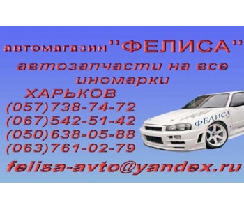 Автозапчасти на иномарки Audi BMW OPEL CITROEN FIAT FORD HONDA HYUNDAI KIA MAZDA MERCEDES MITSUBISHI PEUGEOT RENAULT SKODA SUBARU TOYOTA VOLKSWAGEN Детали ходовой двигателя кузова оптики амортизаторы BILSTEIN BOGE & SACHS KAYABA MONROE PROFIT TOKICO г.Харьков автомагазин "ФЕЛИСА" ул.Веринская, 16а тел: (057)738-74-72 (067)542-51-42 (050)638-05-88 (063)761-02-79 e-mail:felisa-avto@yandex.ru |