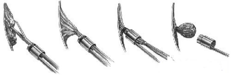 Вакуумный лигатор геморроидальных узлов - инструмент для наложения латексных колец на внутренние геморроидальные узлы. Инструмент многоразового использования, из медицинской нержавеющей стали, разборный, выдерживает любые виды дезинфекции и стерилизации. Снабжен отдельным цилиндрическим конусом диаметром 10 мм для надевания лигатурного кольца на рабочую часть и эргономичной пистолетной рукояткой со спусковым крючком для сбрасывания лигатурного кольца. Через ручку лигатор соединяется с вакуумным аспиратором низкого давления. Рабочая часть изогнута, что даёт хирургу широкий обзор при выполнении процедуры. Диаметр латексных колец при растяжении-8мм, при сжатии-1,5мм. Это простая и очень популярная методика лечения внутреннего геморроя 2-3 стадий. Техника вмешательства состоит в следующем. На рабочую часть лигатора надевают латексное кольцо. Геморроидальный узел втягивается в рабочую часть, представляющую собой полый цилиндр, после чего кольцо накладывается на основание узла, что вызывает его ишемию. Через 7-10 суток геморроидальный узел отторгается. На его месте остается ранка, при заживлении которой прямокишечное сплетение фиксируется рубцовой тканью к подлежащей мышце. Лигирование геморроидальных узлов латексными кольцами позволяет избежать геморроидэктомии примерно у 80% больных геморроем. http://mtex.pulscen.com.ua/ |