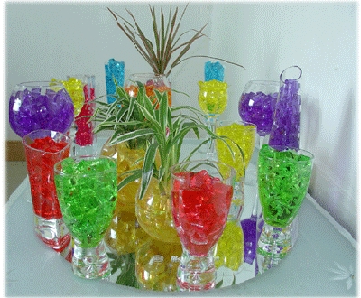 Аквагрунт или гидрогель - это маленькие твердые гранулы, которые после добавления воды увеличиваются в размерах и превращаются в небольшие шарики. Аквагрунт можно использовать как в перемешку с землей, так и как основной грунт. Перемешанный с землей - аквагрунт впитывает воду, а когда растение пересыхает - наоборот отдает влагу и сжимается. Цветной аквагрунт не только прекрастное средство для выращиваниея растений но и интересный декоративный элемент. Вы можете поставить в вазу с аквагрунтом срезанные цветы или посадить туда орхидею или любое другое растение, пригодное для такой посадки. Следует помнить, что сажая растение в аквагрунт , вам придется его постоянно подкармливать. Но с этой проблемой справляются специальные кондиционеры для посадки - она содержат так же и питательные вещества. Чтобы посадить растение в аквагрунт вам нужно сначала "подготовить почву" или размочить гранулы. Насыпьте гранулы в любую емкость и залейте большим количеством воды. Гранулы набухают в среднем 4 часа. После этого лишнюю воду можно слить и посадить растение в грунт. Комбинируя различные варинаты цветовых сочетаний грунта и форм вазы вы можете составлять неординарные и необычные композиции из живых и срезанных цветов. Теперь молодые мамы могут узнать, как заработать в декрете. Только лучшие советы! Вот тут вам и оригинальная идея заработка - формирование флористических долгостоящих композиций в аквагрунте. Старый аквагрунт не обязательно выбрасывать. Можно его мелко покрошить и заделать в землю - в этом случае можно значительно увеличить промежутки между поливами растения. Если вы уезжаете и некому полить ваши цветы - то тут авквагрунт просто ваш спаситель. Даже разложенные на поверхность земли - он отдаст вашему цветку необходимую влагу. Стоимость оптовой партии гидрогеля - 2,5 грн. за 10 граммовую пачку. Цвета в ассортименте. Доставка по Украине осуществляется «новой почтой», «интаймом» и «автолюксом». Оплата - предоплата на карту «ПриватБанка». Оптовым покупателям - приятные цены. Продаём поштучно. Цену уточняйте, пожалуйста, в телефонном режиме. тел.(057)755-20-65; (050)04-55-185; (093)848-12-08. |