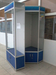 2. Конструкция витрины - "Угловая" (фото 2-3) - для оформления углов помещения или же как акцентная витрина (если составить задними стенками две шт.)