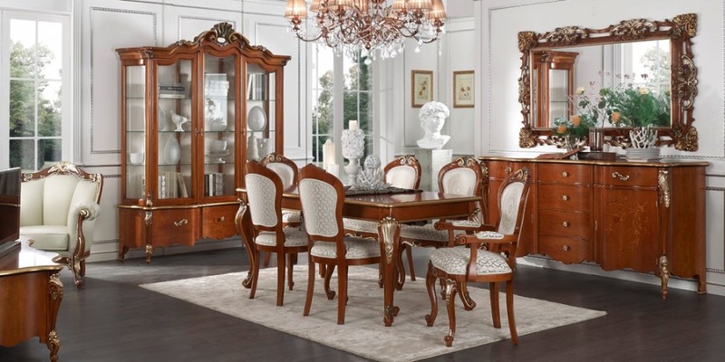 Вся мебель Mirandola Export производится исключительно из натуральных материалов, а в качестве отделки используется ручная резьба, уникальная фурнитура и инкрустация.