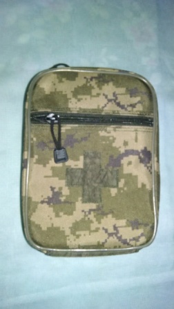 Аптечка -подсумок сделана из камуфляжной ткани ( новый ВСУ, пограничников и мультикам), оптимальный размер: высота 22см , ширина 16 см и ширина 7см. В нее удобно размещается все необходимое. В дно утановлен люверс для удаления воды, в лямках установлены пластиковые вставки, для надежности крепления. Аптечка сделана из прочного, морозостойкого полиэстера , качественная фарнитура, адаптирована под систему Молле, также подходит под любой ремень. |