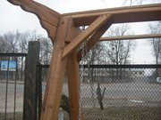 Качели изготовлены из дуба, или ясеня, высота 210 см, ширина 215 см, длинна 125 см. Размер подвесной скамейки - Высота 65 см, ширина 150 см, длинна 50 см, вес 140 кг. Все несущие детали изготовлены из бруса 10 х 10 см. Наш сайт sculpture.com.ua |