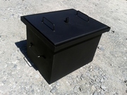 Принцип действия: на дно коптильни насыпаем опилки (под поддон), выкладываем на решетку продукт, накрываем крышкой. Ставим коптильню на открытый огонь (главное ровно) и заливаем по периметру крышки воду (так называемый гидро-замок). На крышке наварен штуцер (на него можно надевать трубку и выводить в окно или вытяжку, что б использовать в домашних условиях) - это единственный путь поступления кислорода в коптильню. Как только из него начинает идти дым, надо засекать время - процесс пошел!!!!!!