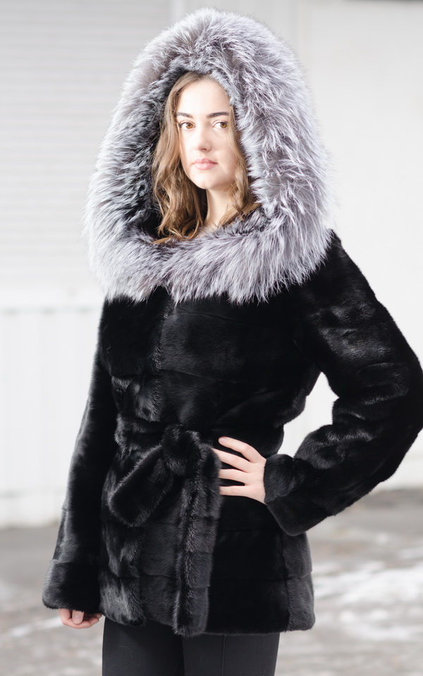 17. Полушубок из норки с отделкой из чернобурки цвета