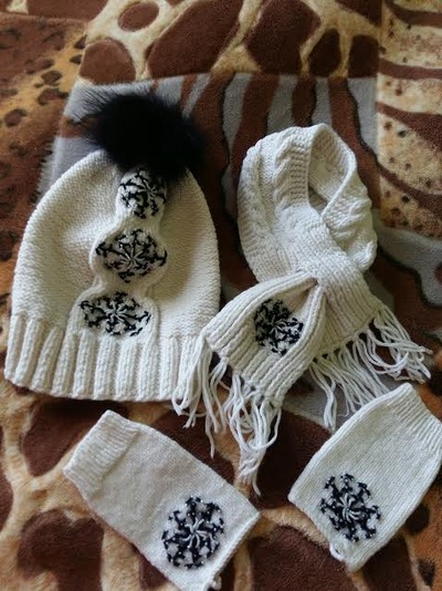 Продам набор (Шапка,шарф,перчатки). Цвет белый. Украшение из бусин. Длина шарфа 70см. Окружность шапки по резинке 42см. В отличном состоянии. Цена 100грн. |