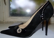 Натуральная замша. Размер 37,5. Длина по стельке 25 см. Высота каблука 11 см. Состояние идеальное (почти новые). |