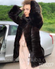 Красивая шуба норковая поперечка размер 44 46 натурального темно-коричневого окраса, разновидность канадской норки махаон. Модель шубки прямая, приталивается вшитой кулисой на талии, придавая шубке утонченности и женственности, при этом данная модель практична и универсальна в носке. Рукава прямые поперечные стандартной длины. Воротник стойка, можно носить как отложной. Длина шубки 83 см.